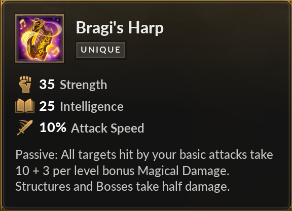 Bragu’s Harp Is maybe the best item for every Basic attack build and very strong early pick up.